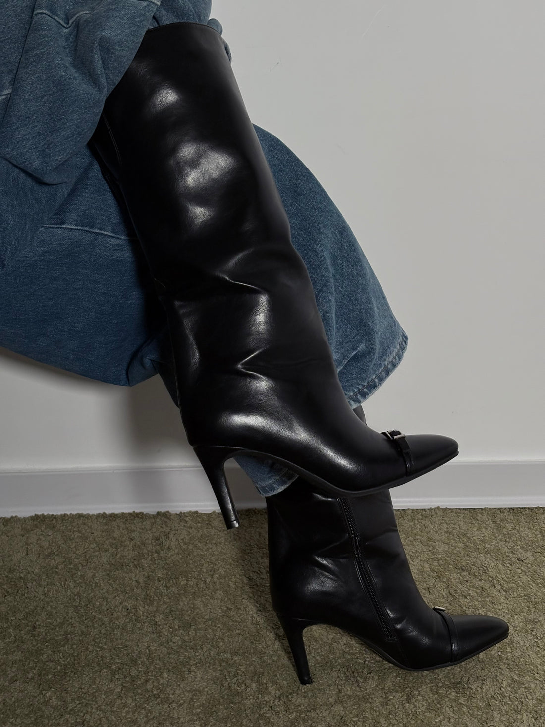 Stivale bellissimo non è stretto al polpaccio ,tacco 7 cm stampa coccodrillo marrone che va...