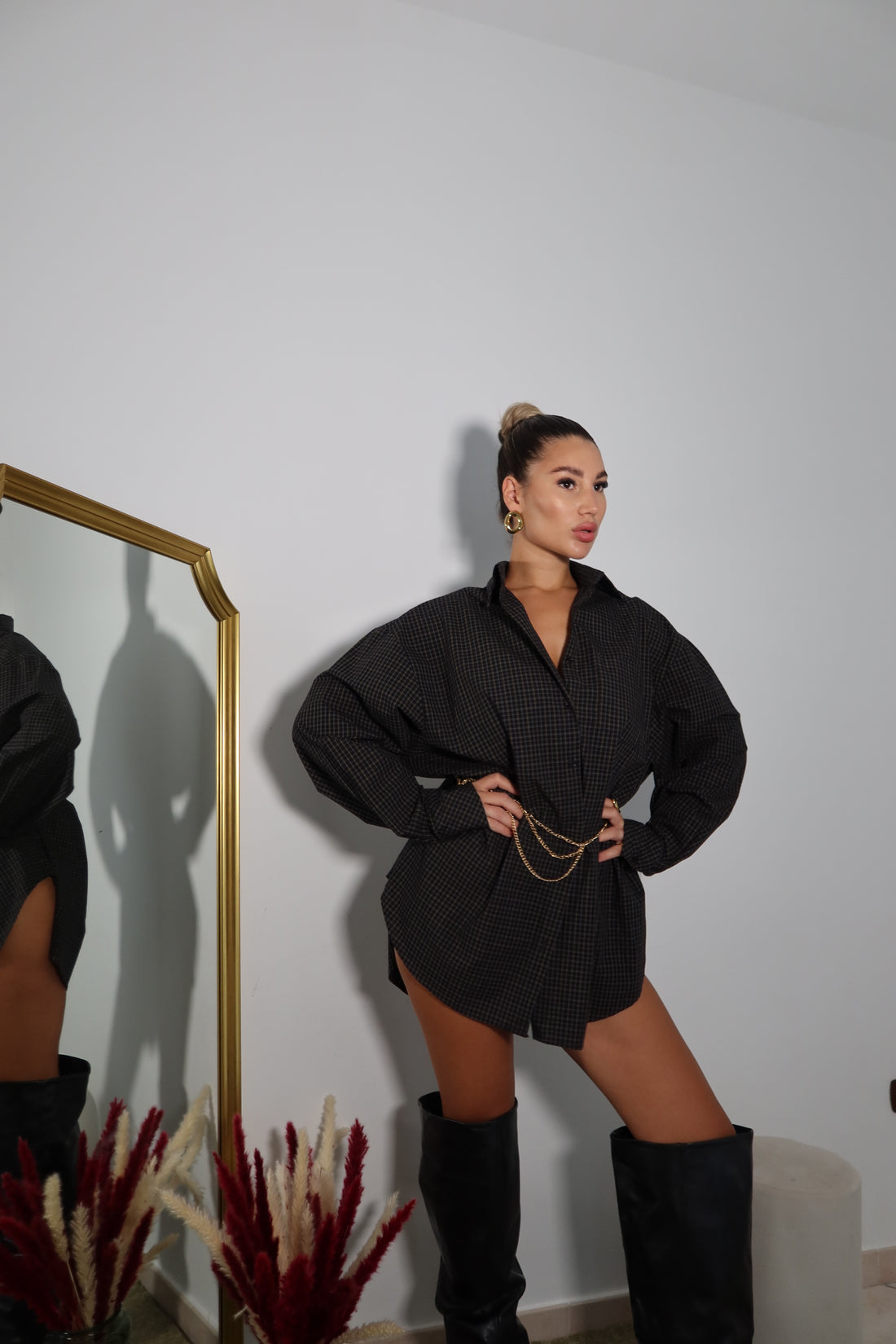 Camicia maxi abbastanza lunga con maniche e spalle ampie ed è una taglia unica .