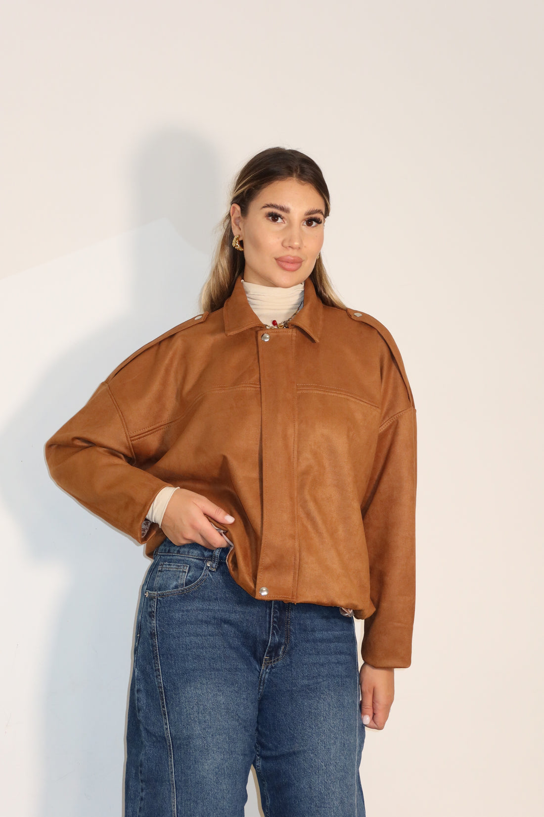 Il giubbotto è di colore marrone cuoio,con una vestibilità ampia . È realizzato con un...