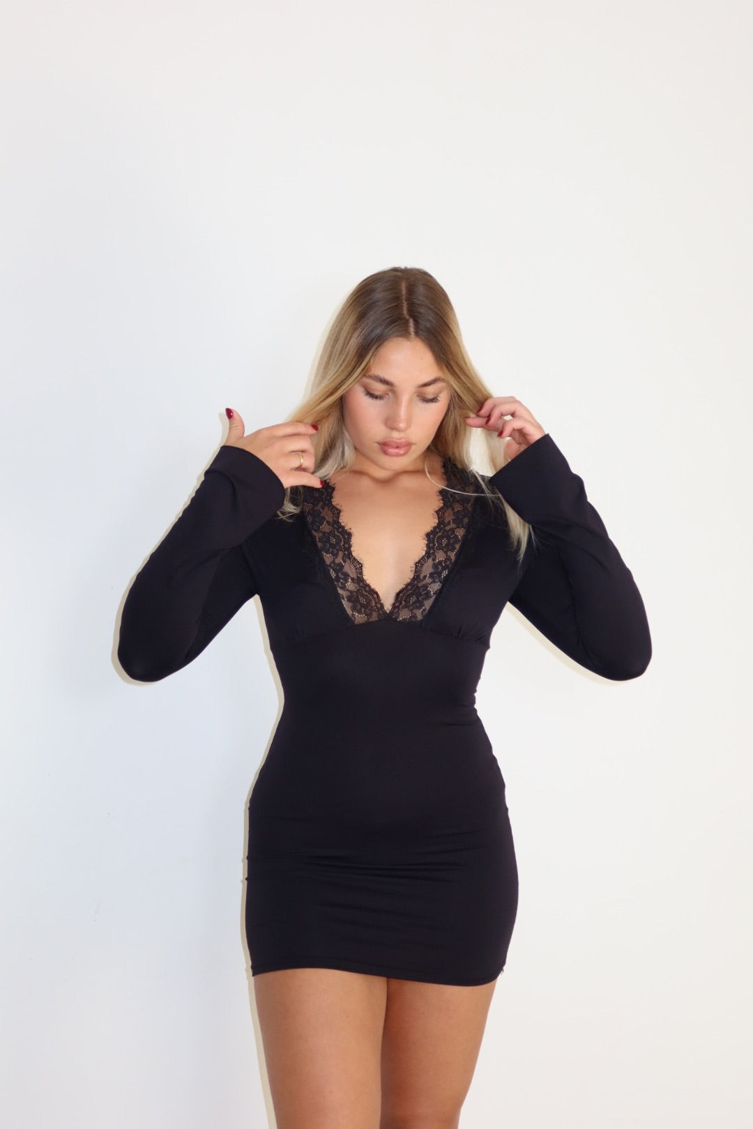 abito dea con manica leggermente ampia e scollatura definita in pizzo