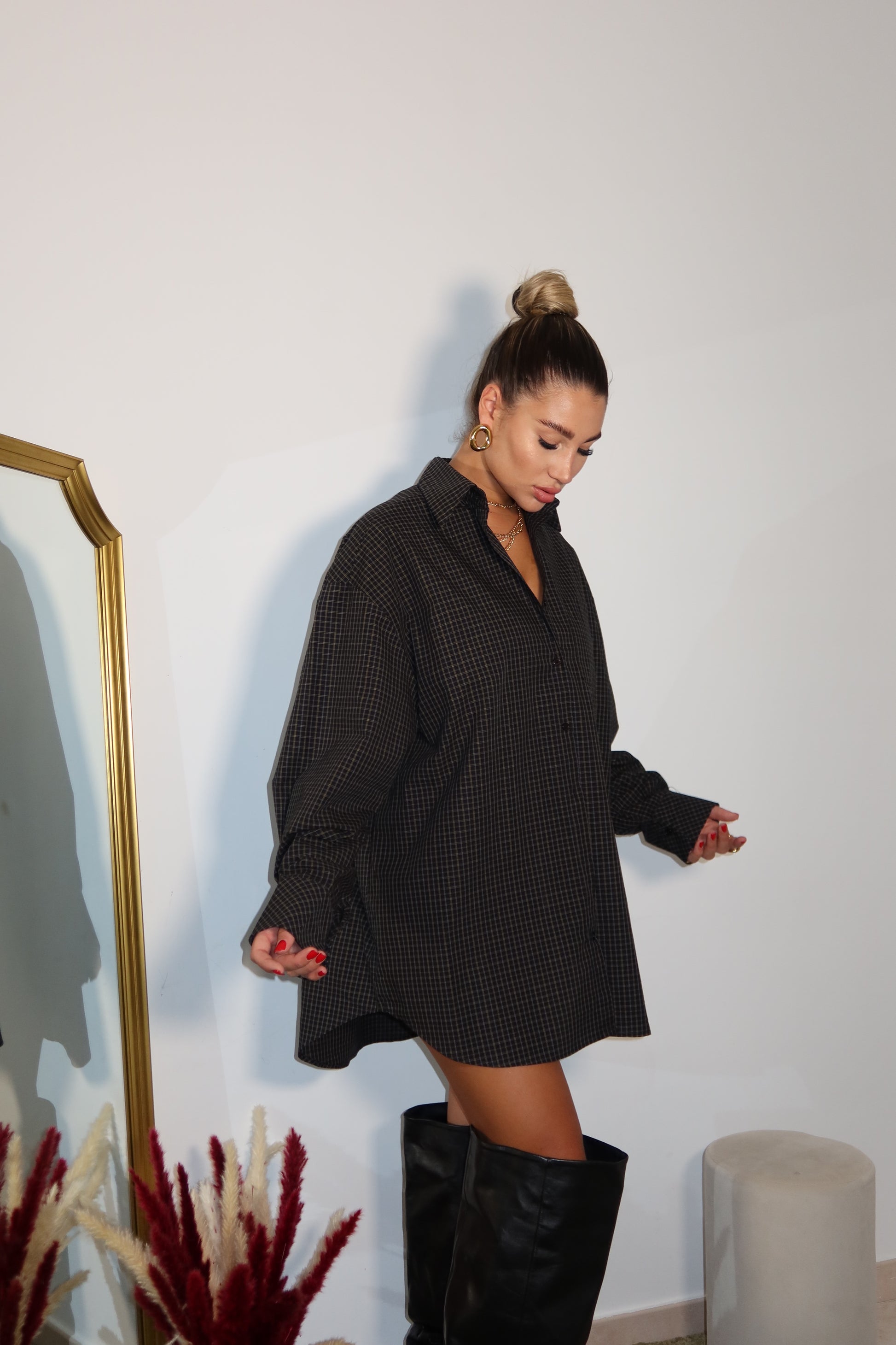 Camicia maxi abbastanza lunga con maniche e spalle ampie ed è una taglia unica .