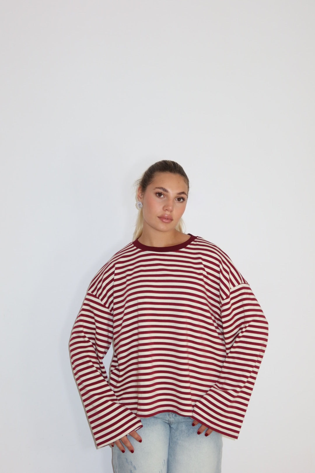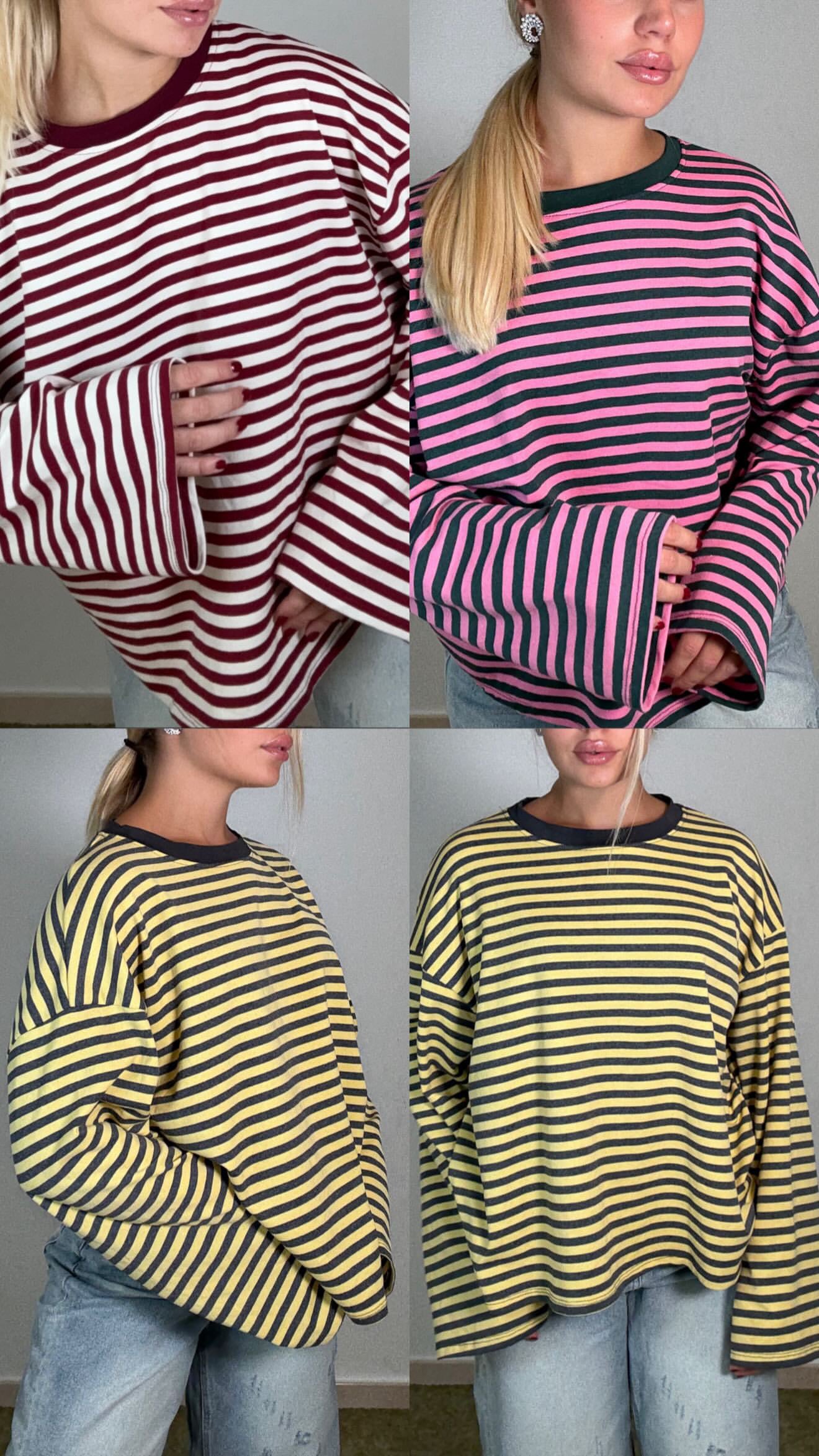 felpa con manica ampia rigata e all interno è garzata , taglia unica