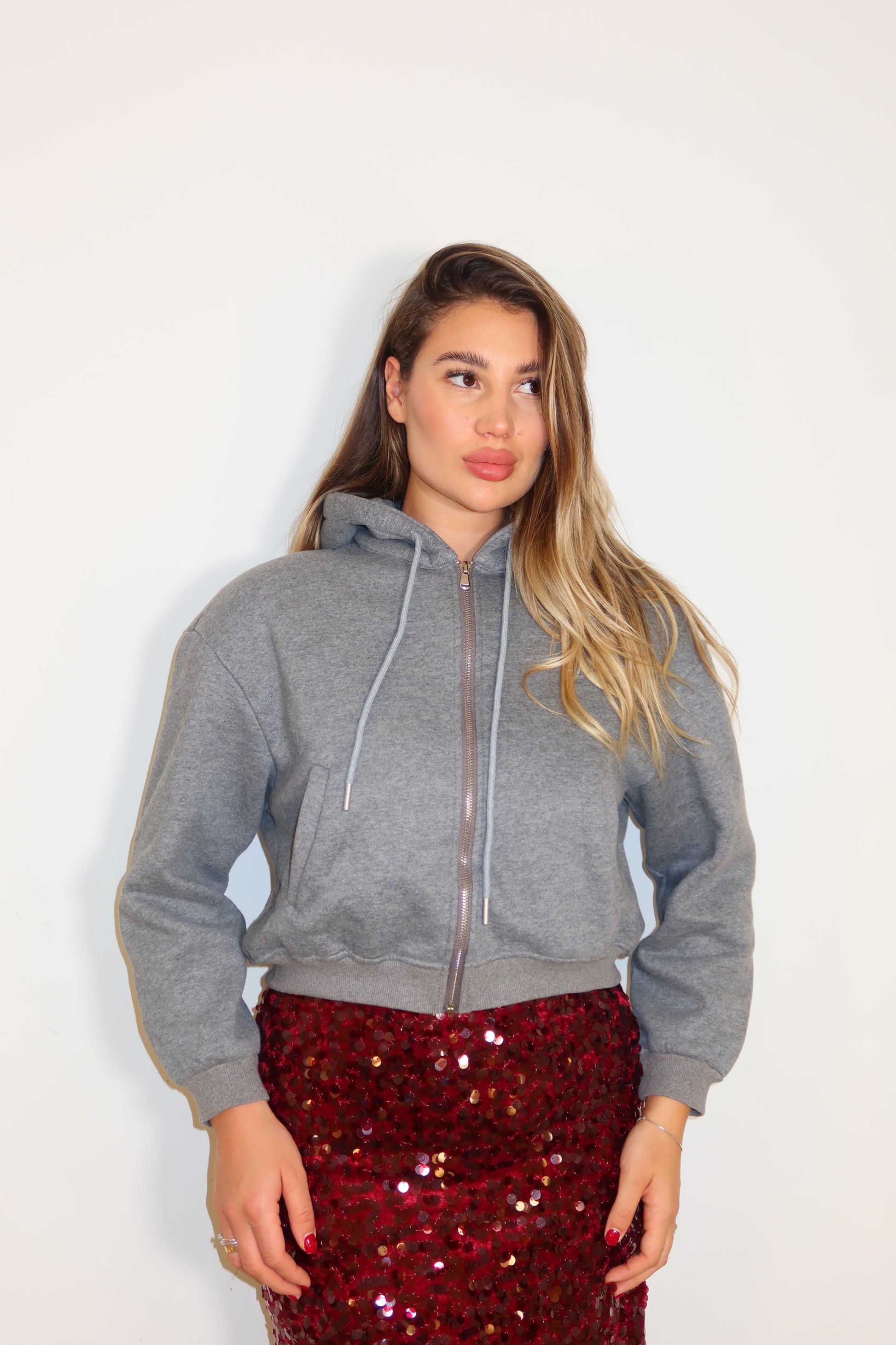 felpa crop felpata all’interno è taglia unica veste dalla xs-L