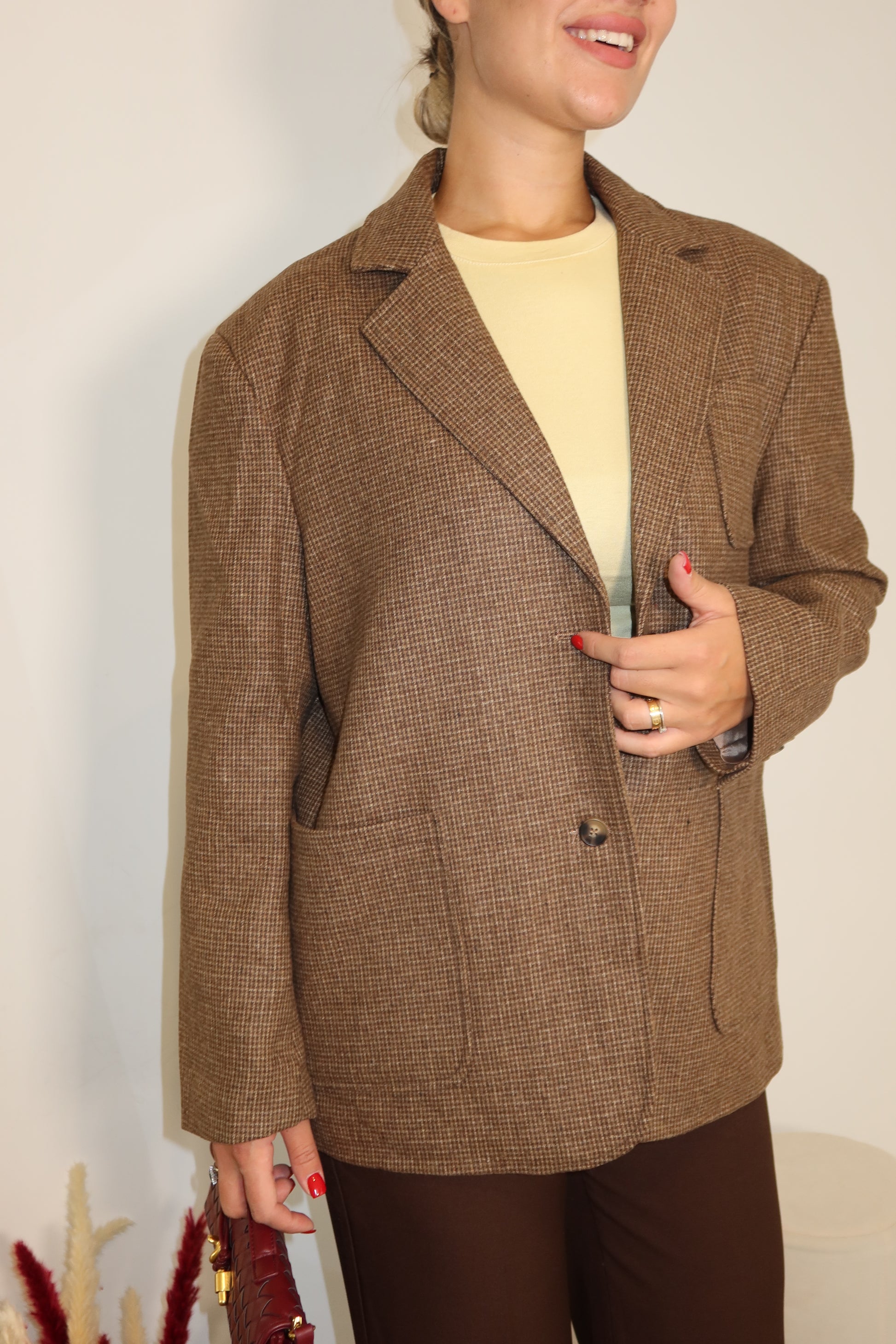 Giacca over size , veste benissimo ed è fatta in un tessuto lanetta rasata. La si può ultilizzare in vari modi