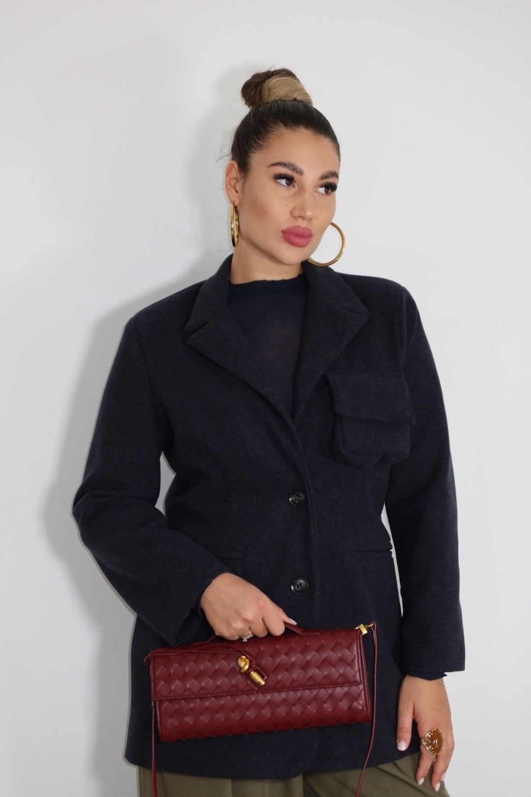 giacca in lana rasata con bottoni sul davanti e sul retro delle maniche , veste perfettamente dalla xs-xl