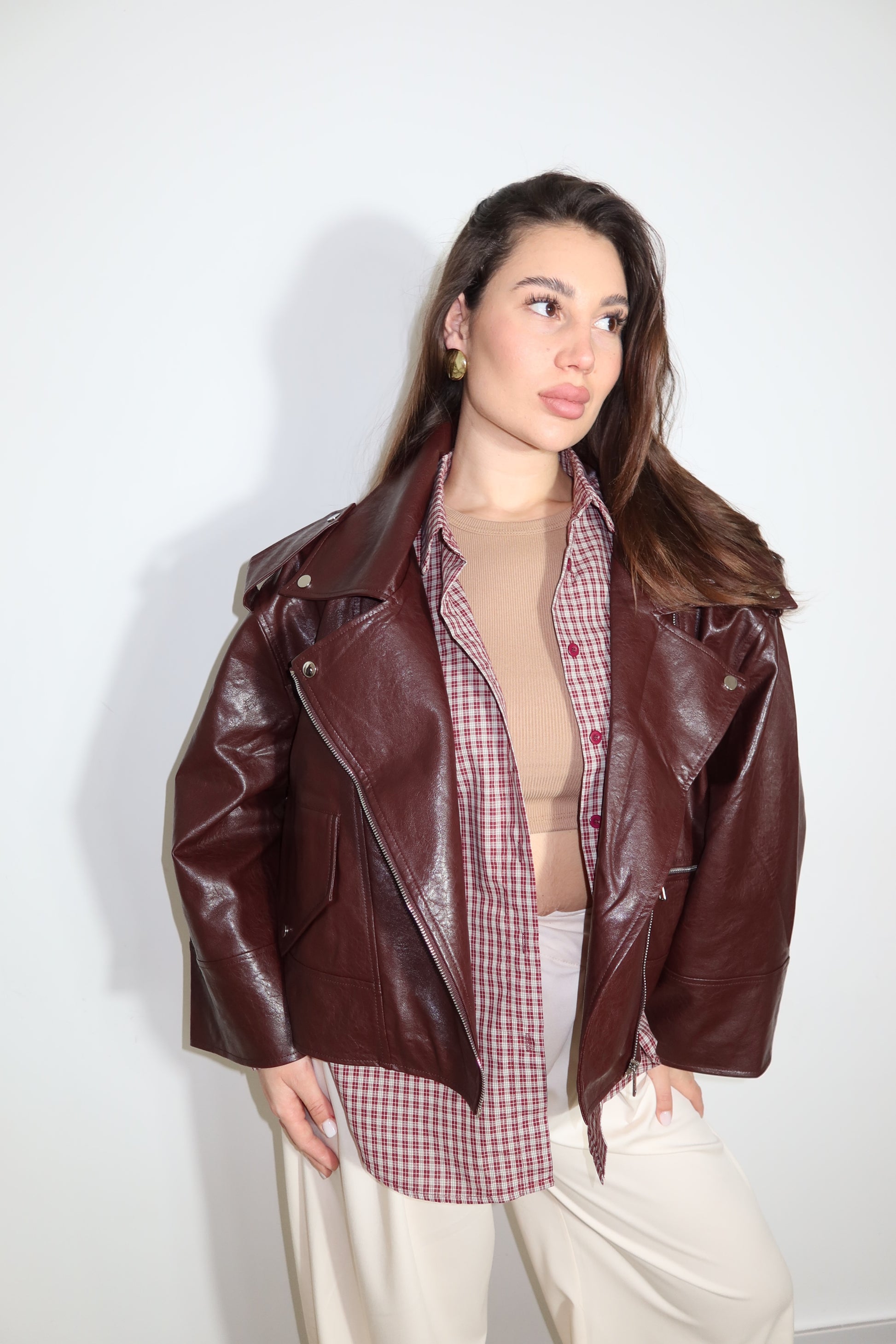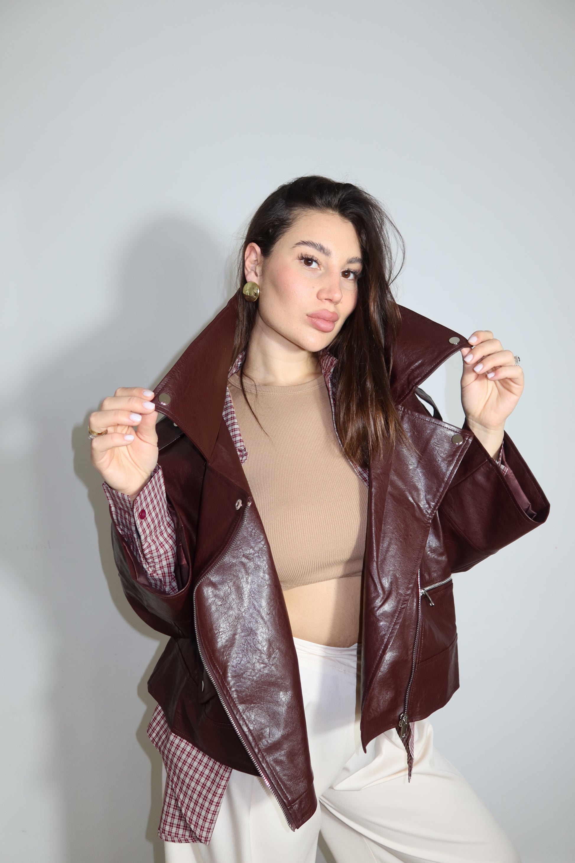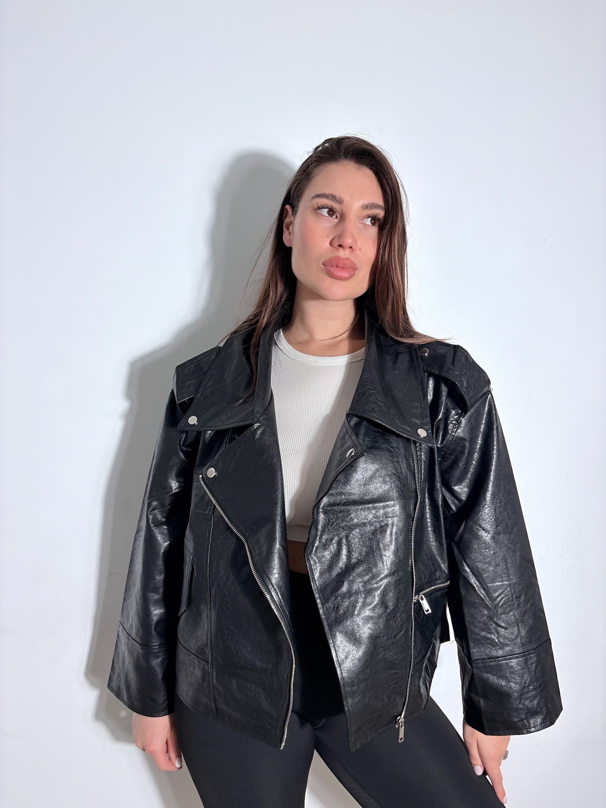 Giubotto in ecopelle offre una vestibilità versatile grazie al design over, adattandosi a varie corporature con la taglia unica. Realizzato con materiali sostenibili, questo capo unisce stile e funzionalità, rendendolo ideale per un utilizzo quotidiano. La sua composizione in ecopelle contribuisce a una riduzione dell'impatto ambientale.