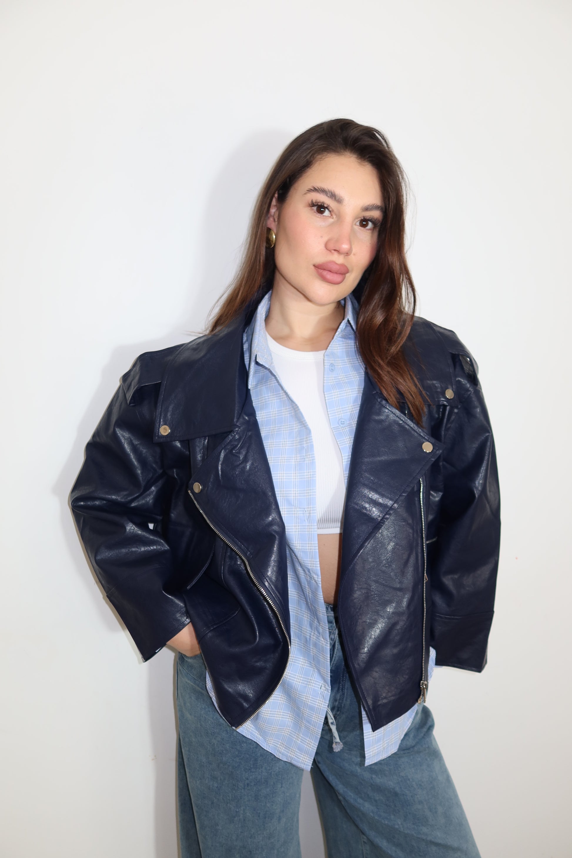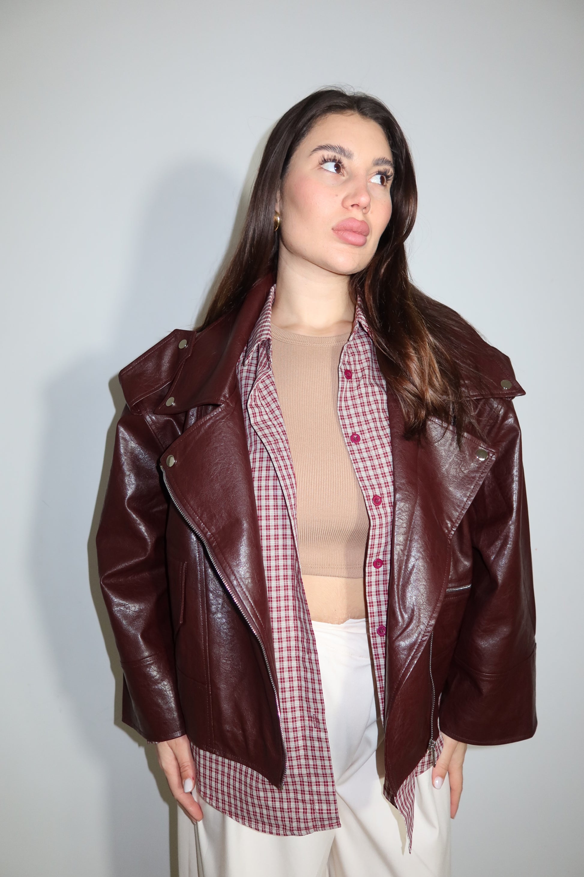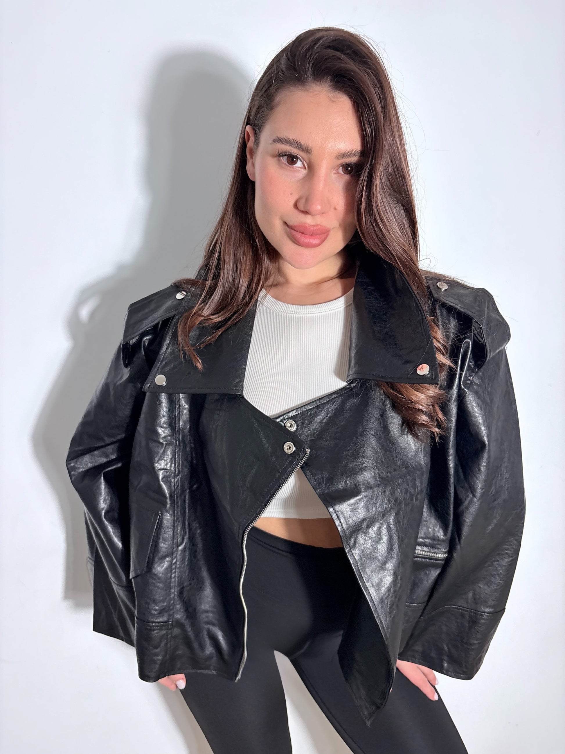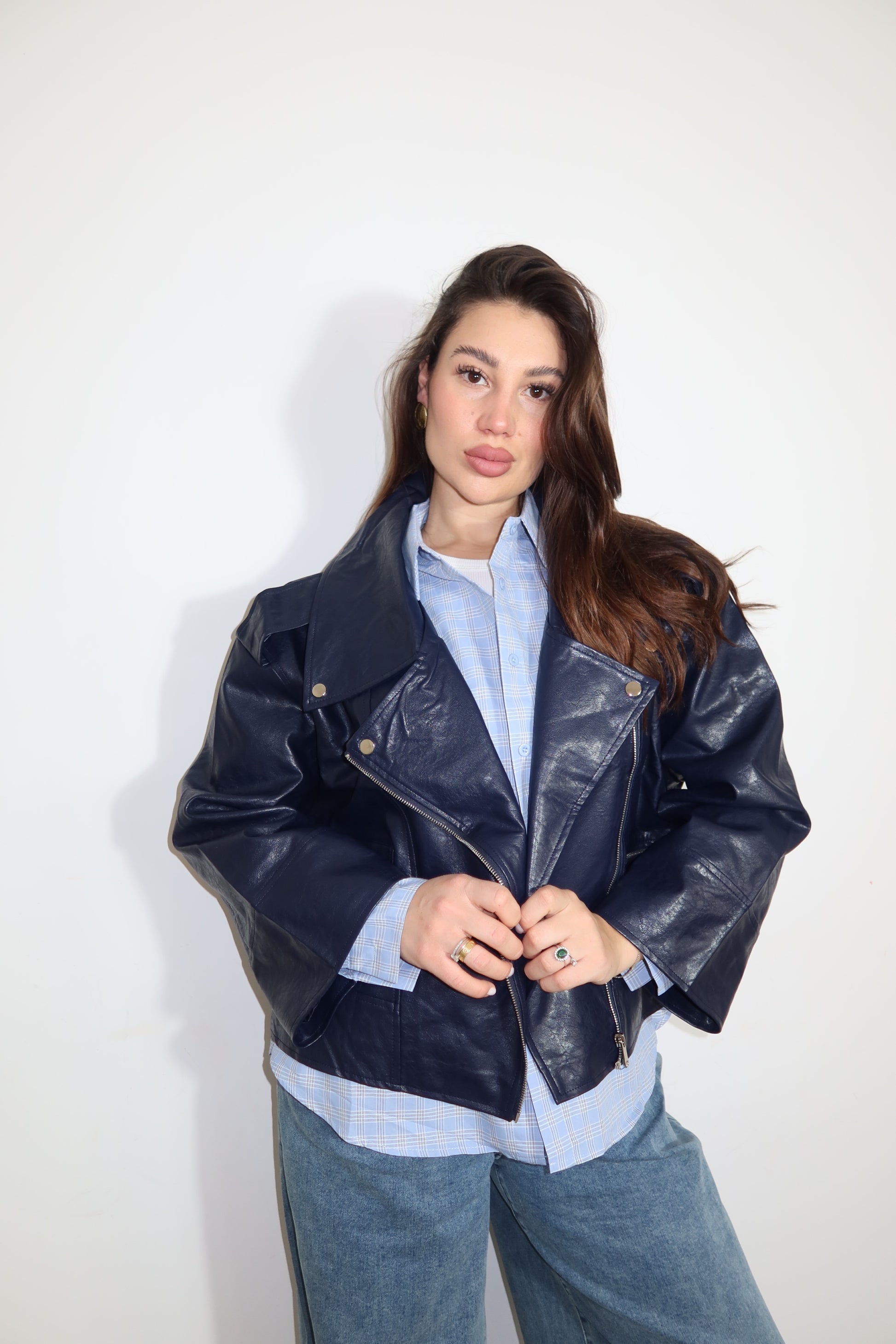 Giubotto in ecopelle offre una vestibilità versatile grazie al design over, adattandosi a varie corporature con la taglia unica. Realizzato con materiali sostenibili, questo capo unisce stile e funzionalità, rendendolo ideale per un utilizzo quotidiano. La sua composizione in ecopelle contribuisce a una riduzione dell'impatto ambientale.