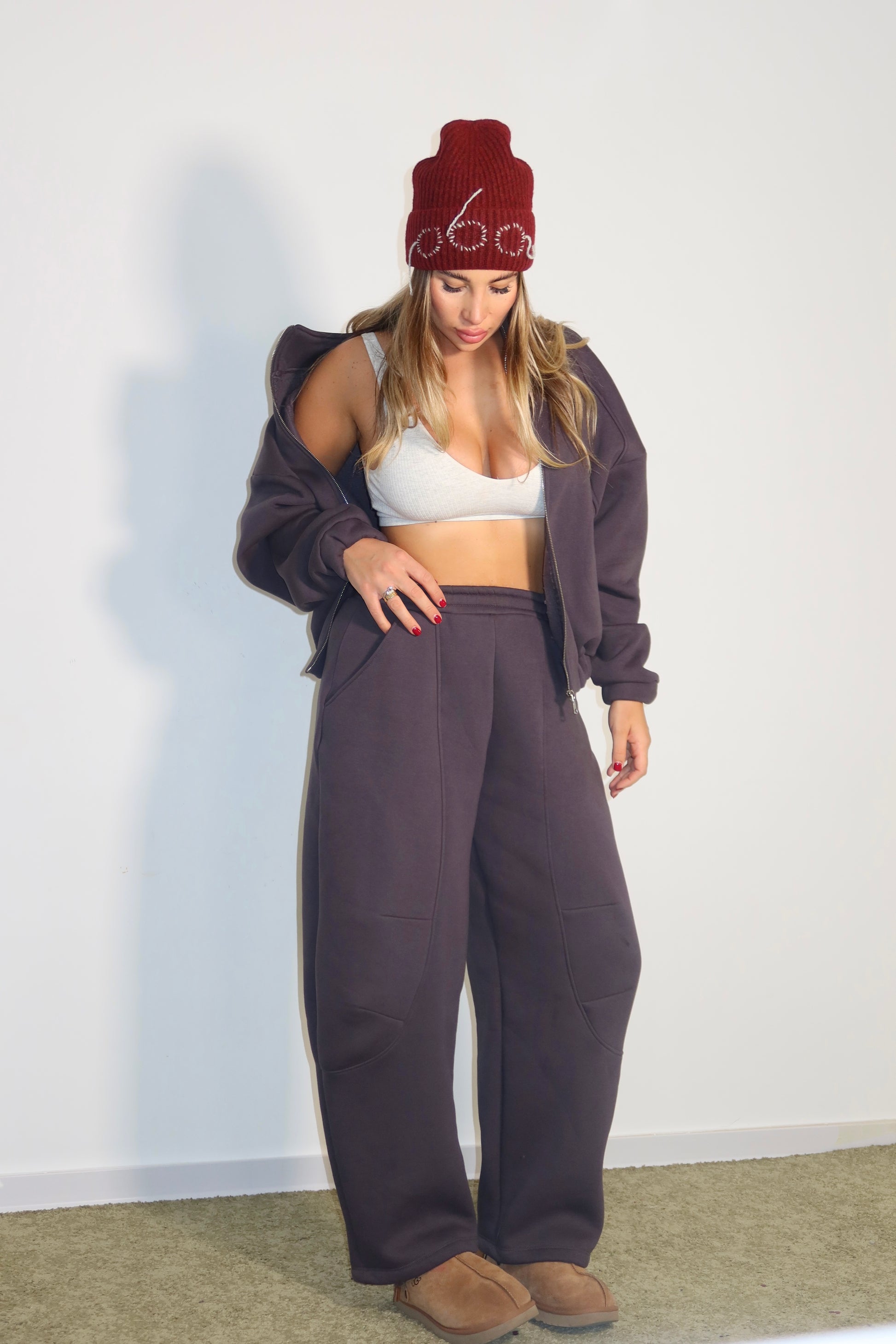 la tuta ballon è composta da: felpa modello oversize con zip e ha un taglio morbido , Pantaloni ballon , con tasche grandi e cuciture evidenti sul davanti; vestibilità regolare .È taglia unica veste dalla xs-Xl